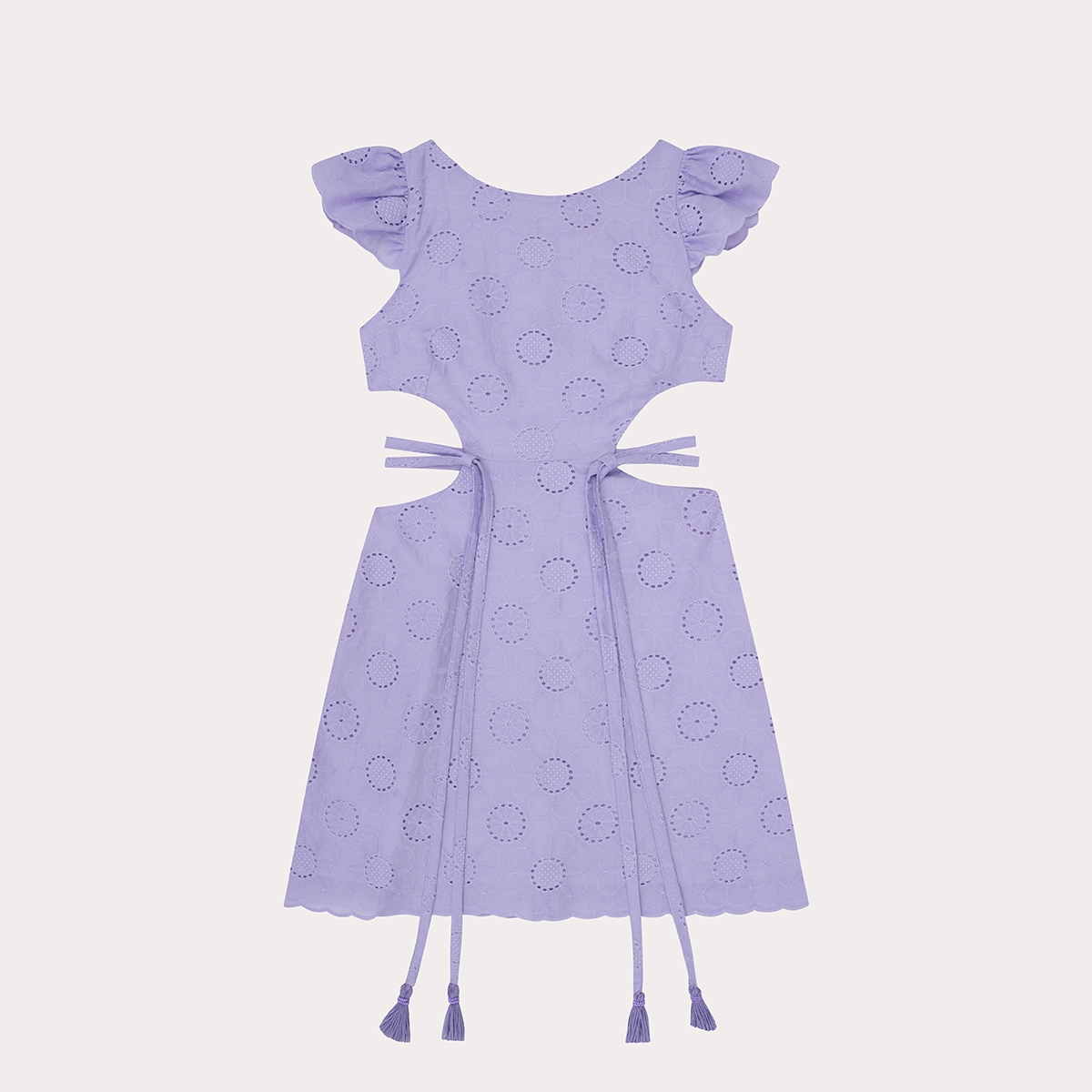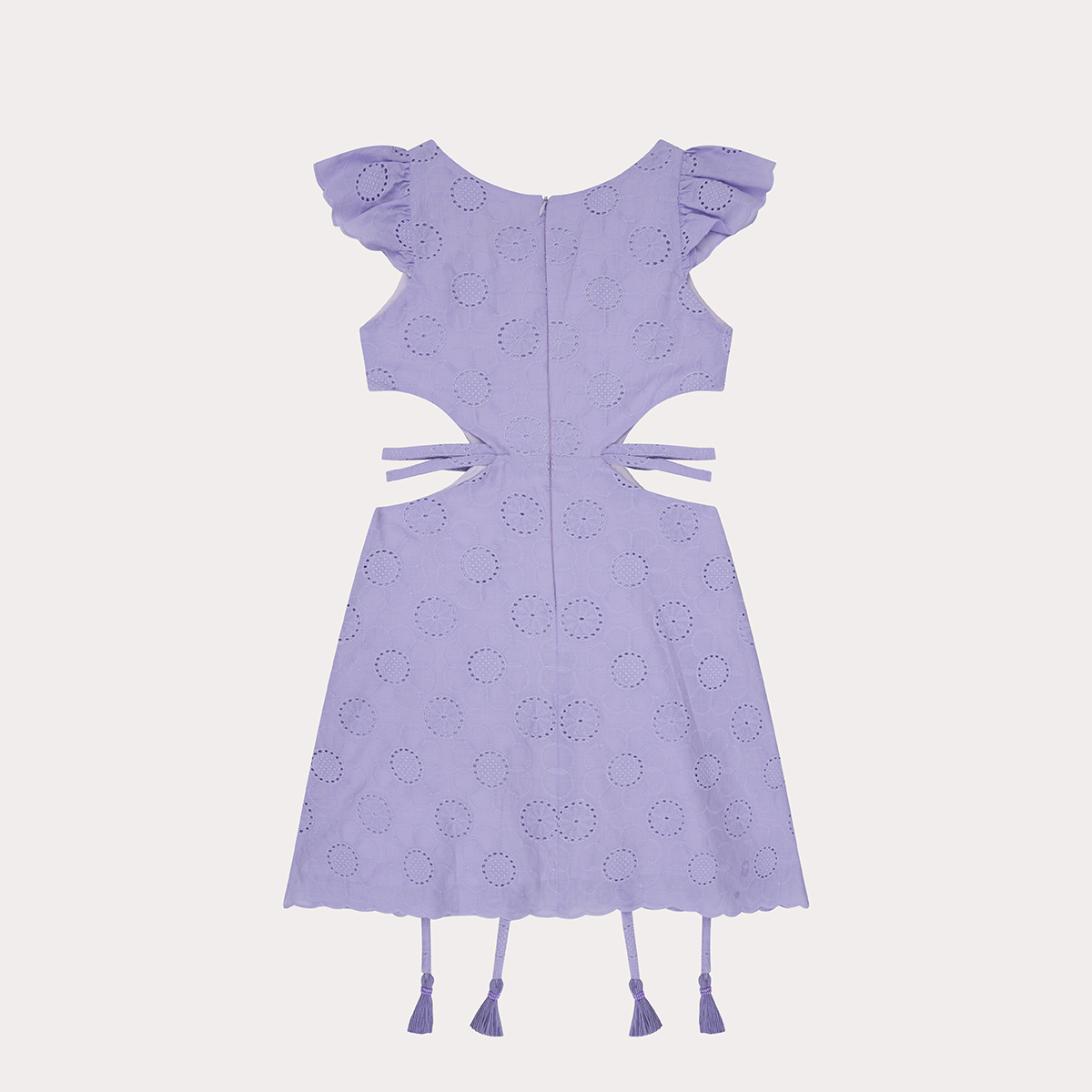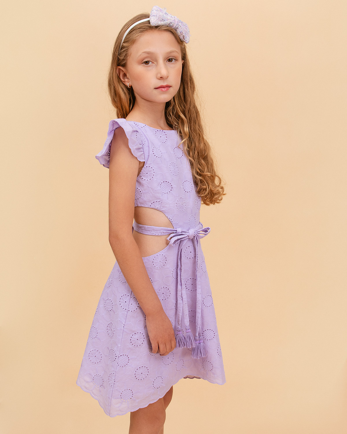Vestido con hermoso diseño asimétrico a nivel de la cintura, boleros en su manga, elaborado en ojalillo, presenta un cinturón con acabos en borlas y bordado en canutillo hecho a mano, presenta cierre en la espalda. Definitivamente el lavanda Dress es una opción perfecta para nuestras niñas mas grande que quieran lucir lindas y modernas.
